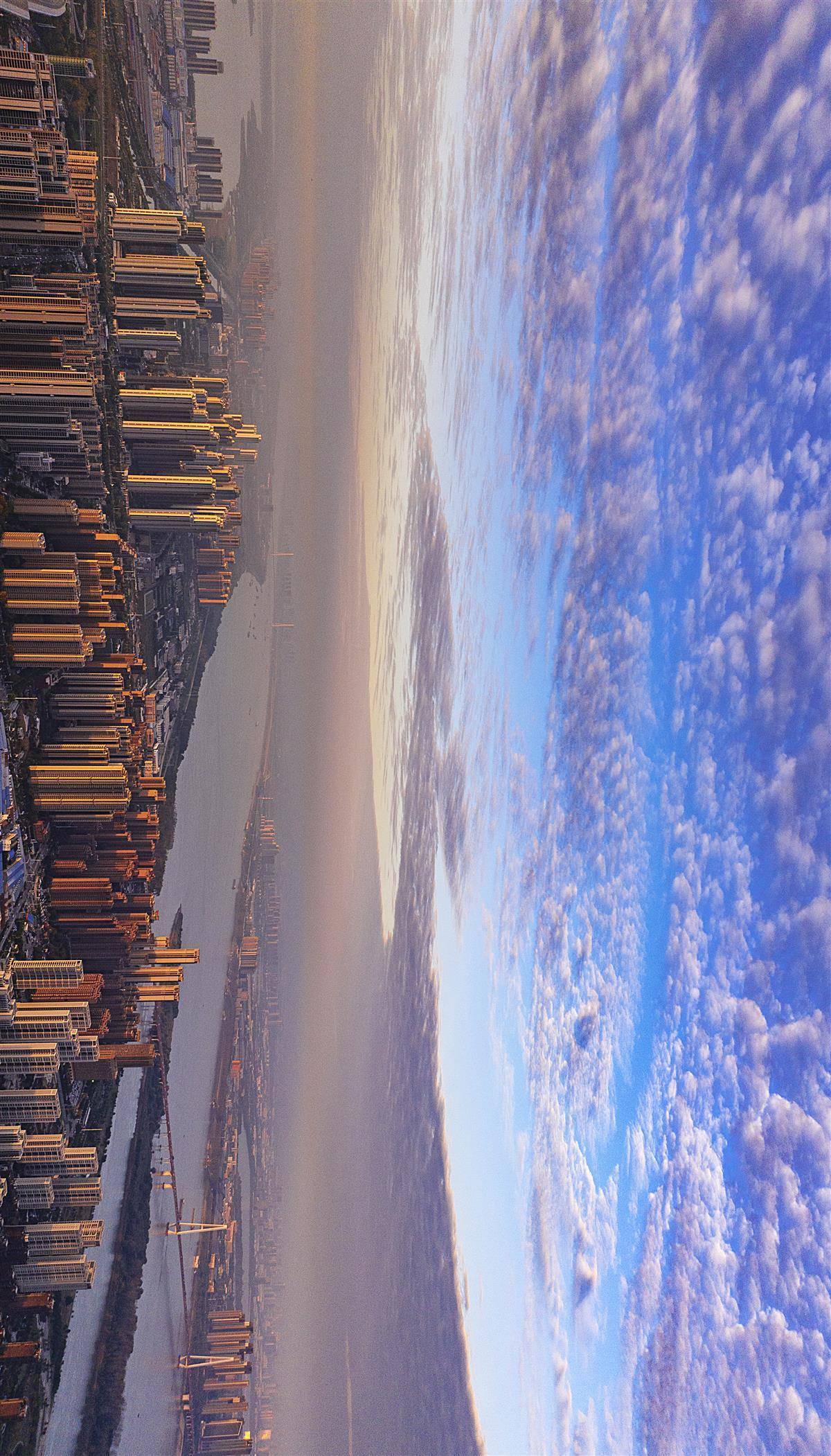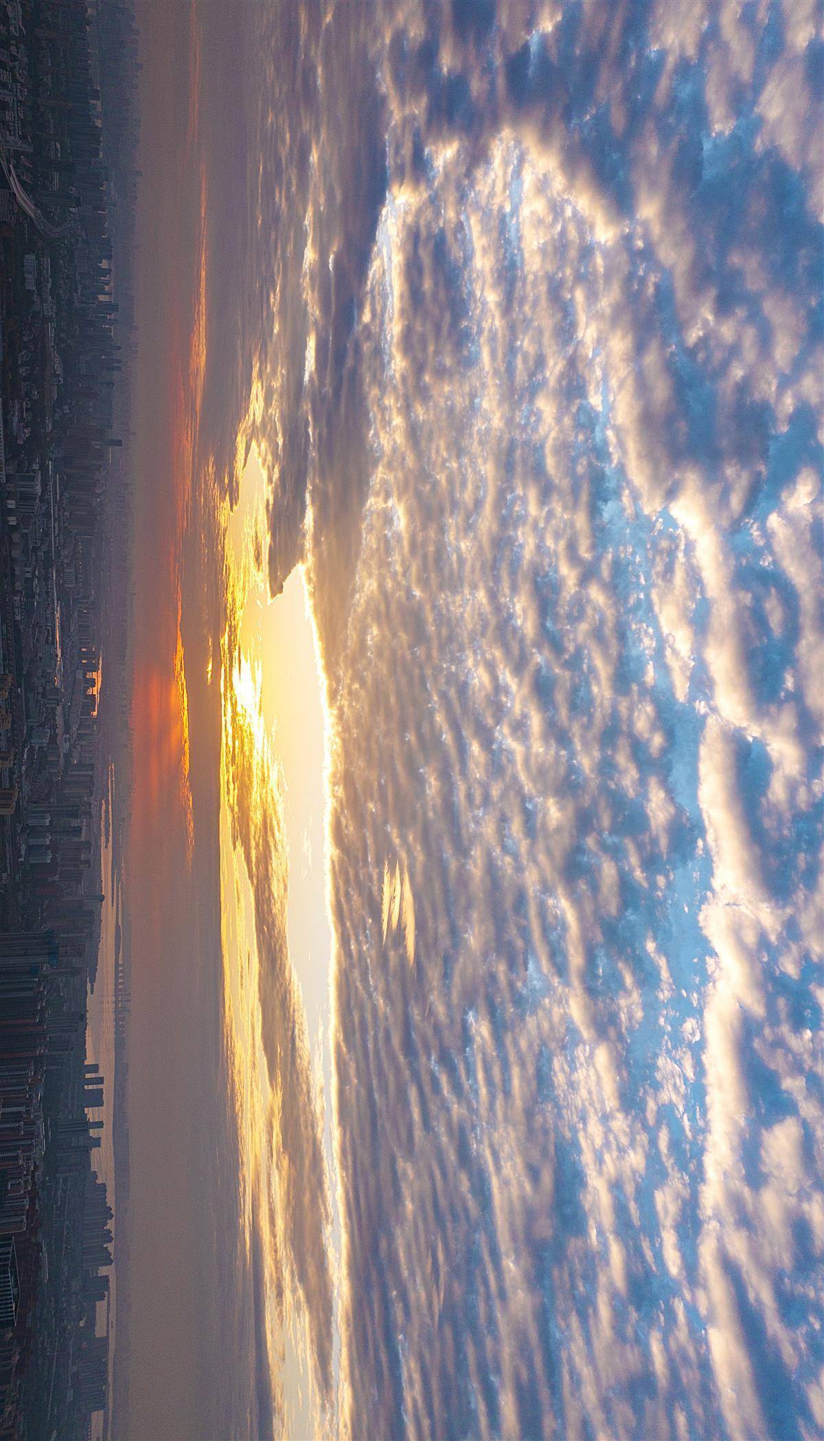 11月13日同花易配,晨曦初露,武汉的天空出现壮丽的“鱼鳞云”。