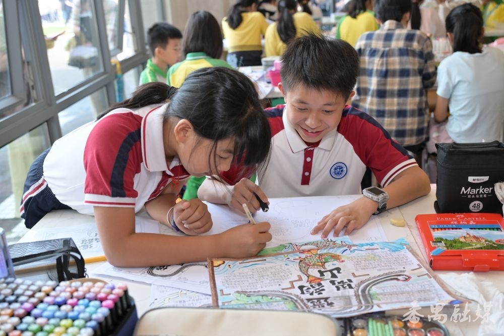 比赛现场,参赛选手们手持彩笔、马克笔、水彩等工具,在画纸上用心创作。鳌鱼舞、端午龙舟、广彩、飘色等非遗元素与现代创意交融,古老非遗在青春笔触中焕发新生。参赛选手钱同学表示,比赛前做了充分准备,查阅了大量番禺非遗资料,还专门向长辈请教鳌鱼舞的历史和动作特点,并练习了多种手抄报排版技巧。参赛选手王同学则以敦煌石窟为题材进行创作,她告诉记者,最近正在学习关于敦煌的课文,被壁画艺术深深吸引,希望通过手抄报将敦煌文化与番禺本土非遗相结合,表达对中华优秀传统文化的热爱。